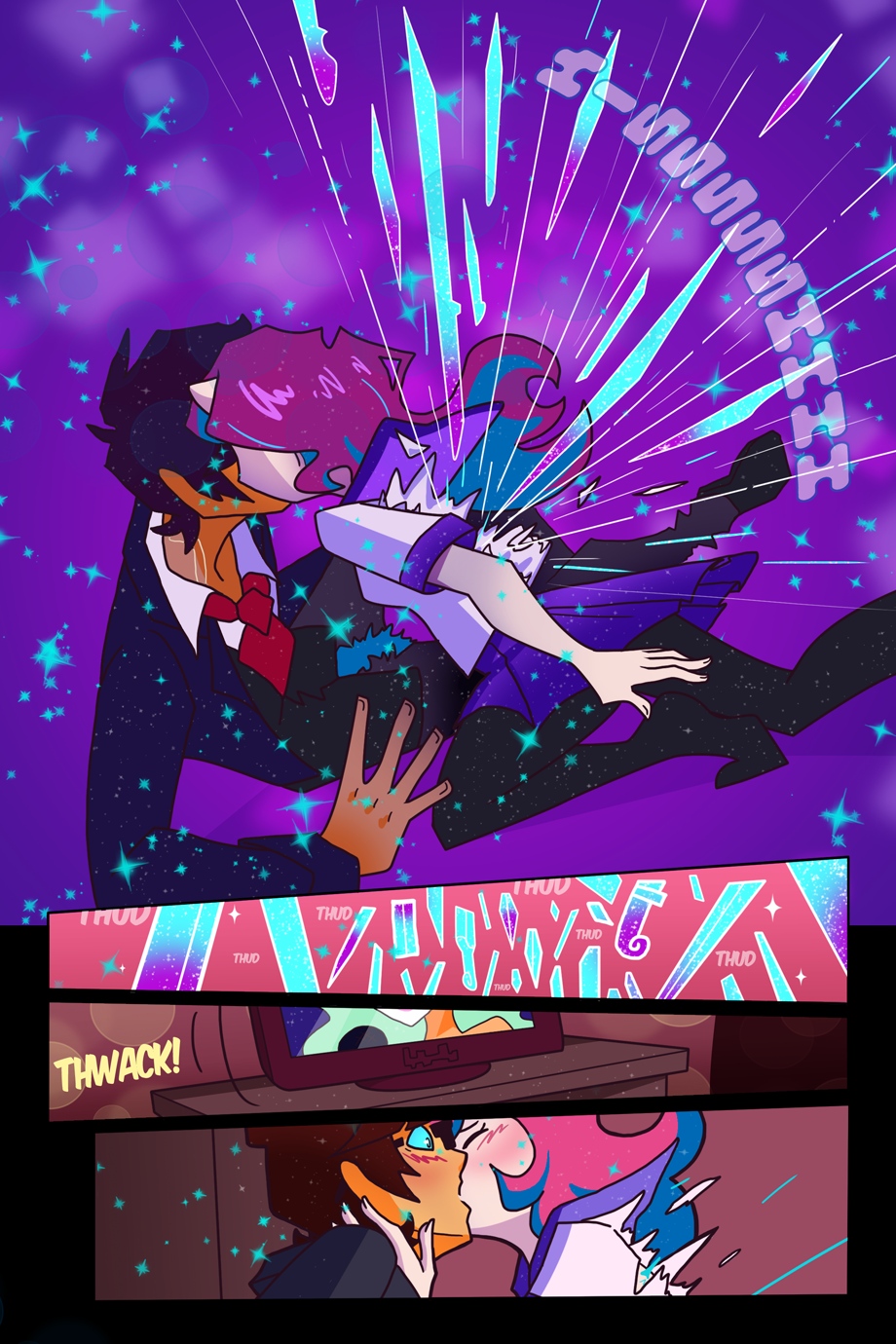 So, this is our last monday update for a while, after this we'll only be updating Fridays for a few weeks. I have to do two pages a week for class (which will ultimately cumulate with a new AD side story!) and I have two cons coming up inside a month... I can't keep it all up! <_>'''